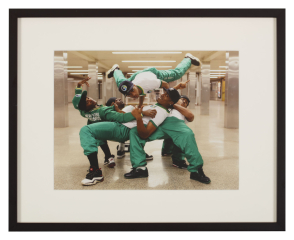 Jamel Shabazz. Breezy Boy Breakers, Midtown, Manhattan, NYC, 2011. Chromogenic print. The Dean Collection, courtesy of Swizz Beatz and Alicia Keys. © Jamel Shabazz. (Photo: Glenn Steigelman)