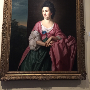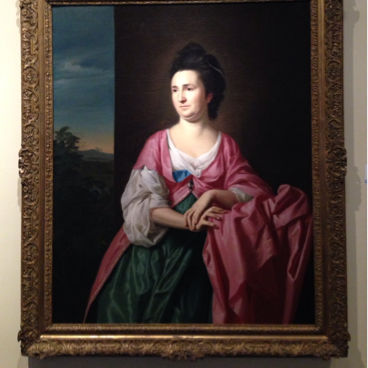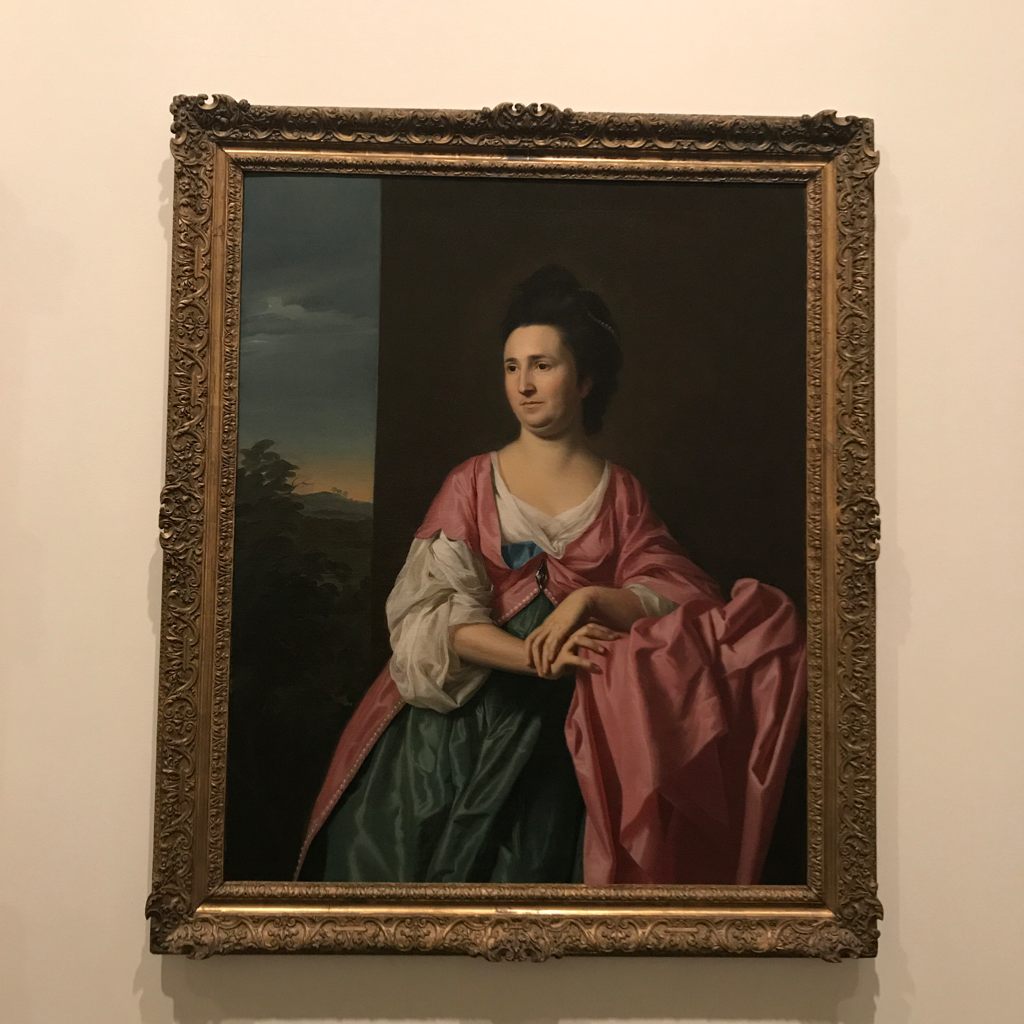 If you want to dig into some specific objects, the portrait of Mrs. Silvester Gardiner in that first gallery I mentioned might be interesting to look at. It was painted in 1772 and during the revolution, her husband tended to hurt British soldiers after the battle of Bunker Hill, and was quite vocal about his Tory views. They ended up sailing back to England in 1778.