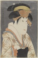 This print of the actor Segawa Kikunojo III is one of the most celebrated portraits of the onnagata (male actor in a female role) by the late eighteenth-century artist Toshusai Sharaku. It portrays a character in the Genroku era play Hanaayame Bunroku Soga (The Iris Saga of the Bunroku Era), a drama that retells the true story of the vengeance of ten brothers for their father's assassination in 1701. The play was performed at the Miyako-za theater in the city of Edo in May 1794.