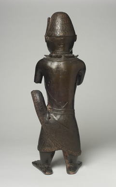 Edo. Figure of a Hornblower (Ikpakohẹn), ca. 1504–50. Copper alloy, iron, 24 1/2 x 8 1/2 x 6 in. (62.2 x 21.6 x 15.2 cm). Brooklyn Museum, Gift of Mr. and Mrs. Alastair B. Martin, the Guennol Collection, 55.87. Creative Commons-BY (Photo: Brooklyn Museum, 55.87_back_PS11.jpg)
