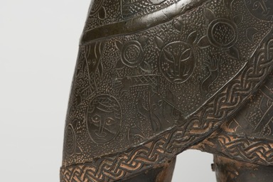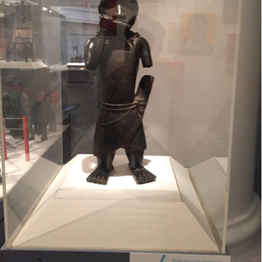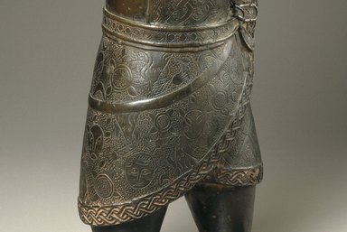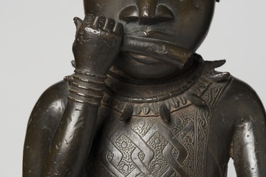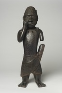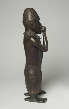 Edo. Figure of a Hornblower (Ikpakohẹn), ca. 1504–50. Copper alloy, iron, 24 1/2 x 8 1/2 x 6 in. (62.2 x 21.6 x 15.2 cm). Brooklyn Museum, Gift of Mr. and Mrs. Alastair B. Martin, the Guennol Collection, 55.87. Creative Commons-BY (Photo: Brooklyn Museum, 55.87_detail_side_front_SL1.jpg)