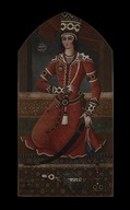 The subject of this portrait, Prince Yahya, was a son of the second ruler of the Qajar dynasty, Fath ‘Ali Shah (reigned 1797–1834). His father appointed him at an early age to govern the province of Gilan, near the Caspian Sea. With its emphasis on his costume’s many pearls, his prominently displayed sword, and his European-style pocket watch, the portrait captures the wealth, authority, and modernity of its youthful subject.