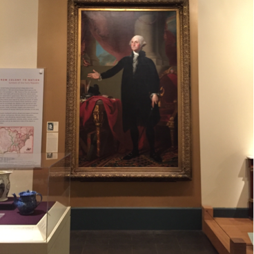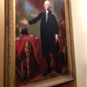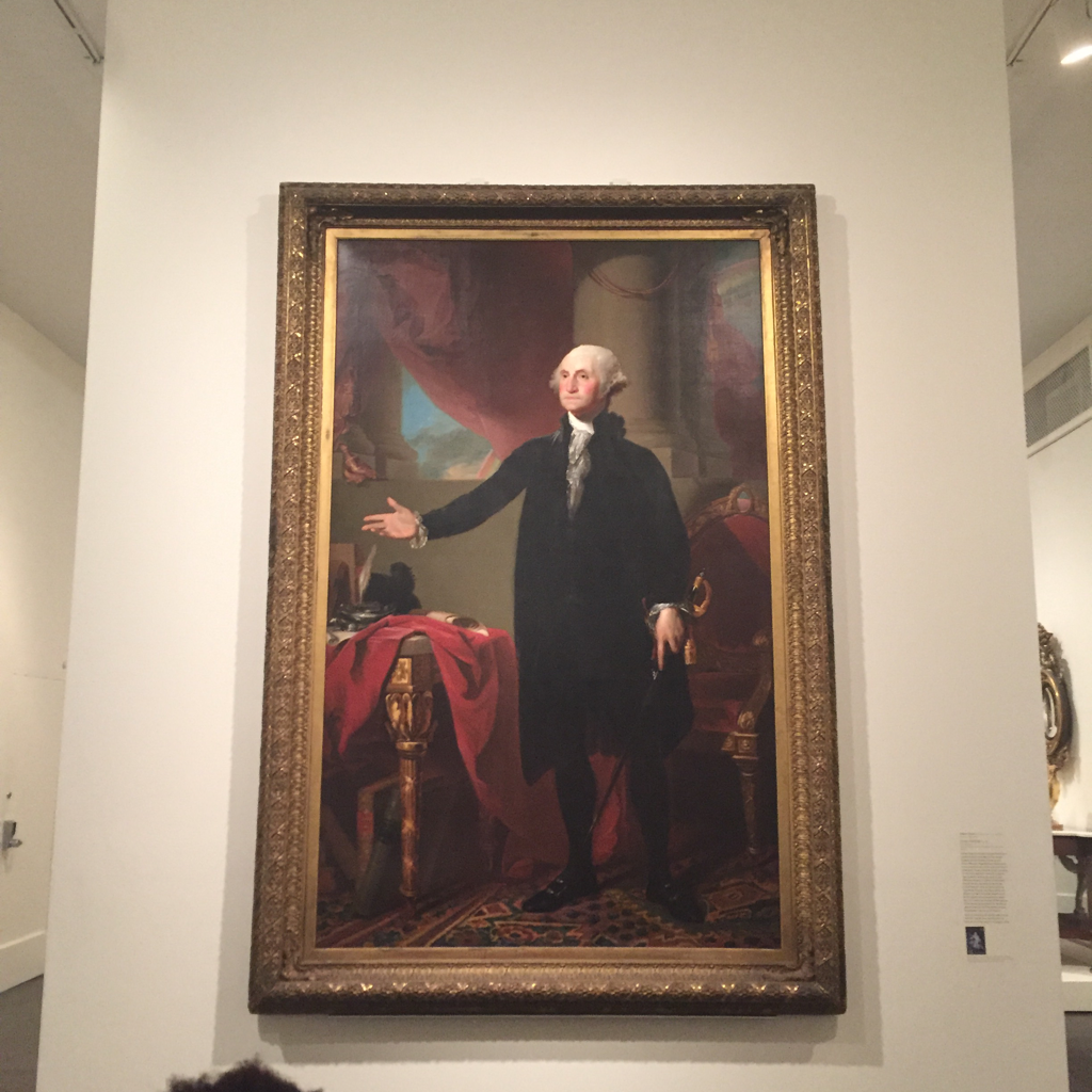 We do have a Gilbert Stuart portrait of Washington on view, but it is not the one that inspired by picture on the dollar bill.