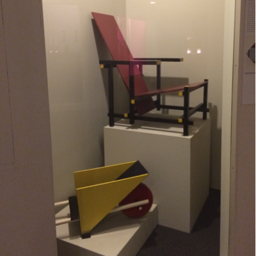 These artists were interested in exploring basic geometry and primary colors. You can see that in the chair, which has a lot of rectangles and very specific use of color.
