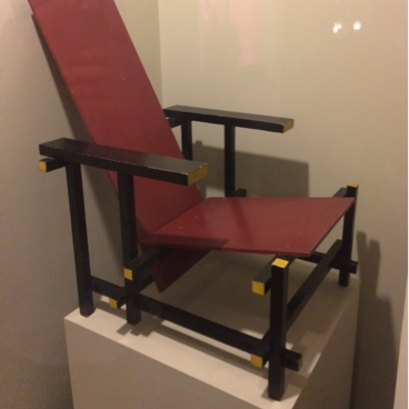 I so agree! It's funny how over time the creation of chairs moved from very practical and uncomfortable in the 1600s, to extremely tufted and full of fabric in the 1800s and then more 'modern' designers, like Rietveld, seem so much less interested in comfort. We have a Rietveld chair on display on the 4th floor.