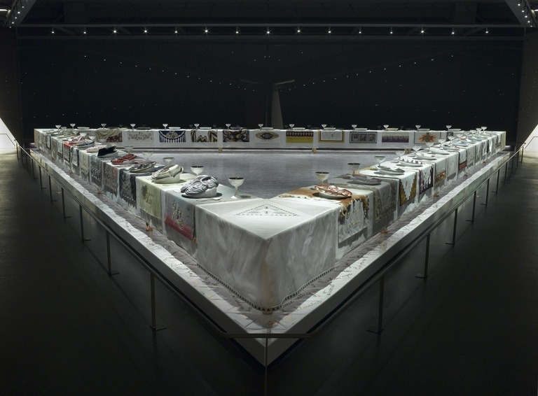 Judy Chicago (American, born 1939). The Dinner Party, 1974–79. Ceramic, porcelain, textile, 576 × 576 in. (1463 × 1463 cm). Brooklyn Museum; Gift of the Elizabeth A. Sackler Foundation, 2002.10. © Judy Chicago. (Photo: Donald Woodman)