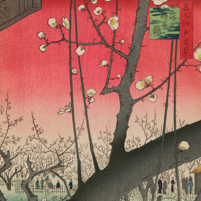 Utagawa Hiroshige. Plum Estate, Kameido (Kameido Umeyashiki), no. 30 from 100 Famous Views of Edo, 11th month of 1857. Woodblock print. Brooklyn Museum; Gift of Anna Ferris, 30.1478.30. (Photo: Brooklyn Museum)