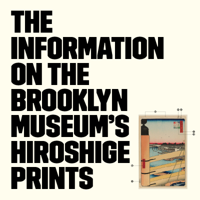 Explore the full series online. Make it a multisensory experience by listening to original compositions that complement three of Hiroshige’s prints, written by Niles Luther, the Brooklyn Museum’s composer in residence.