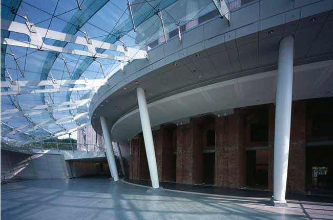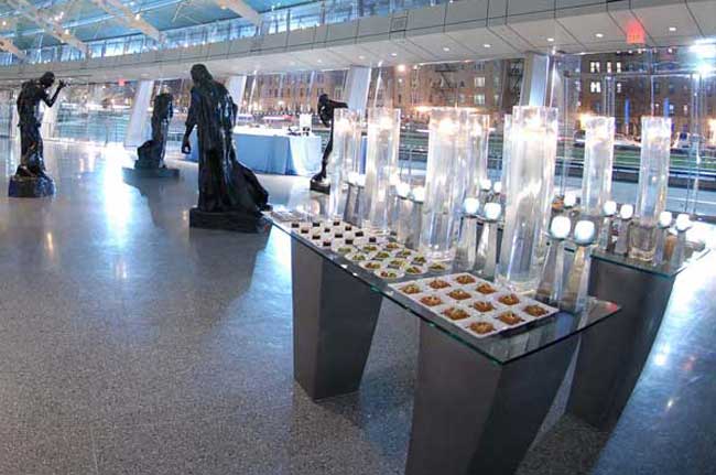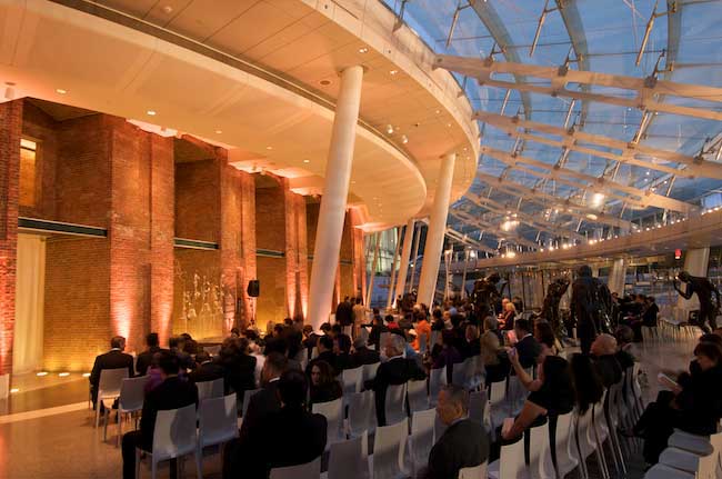 Redesigned in 2004 by Polshek Partnership Architects, this modern, elegant space features an expansive sheer glass pavilion that overlooks our welcoming public plaza. The brick piers dividing the pavilion and adjacent lobby are the same bricks that once enclosed our five front doors, excavated, restored, and permanently exposed in the space. This grand pavilion artfully melds the historical and contemporary components of the building.